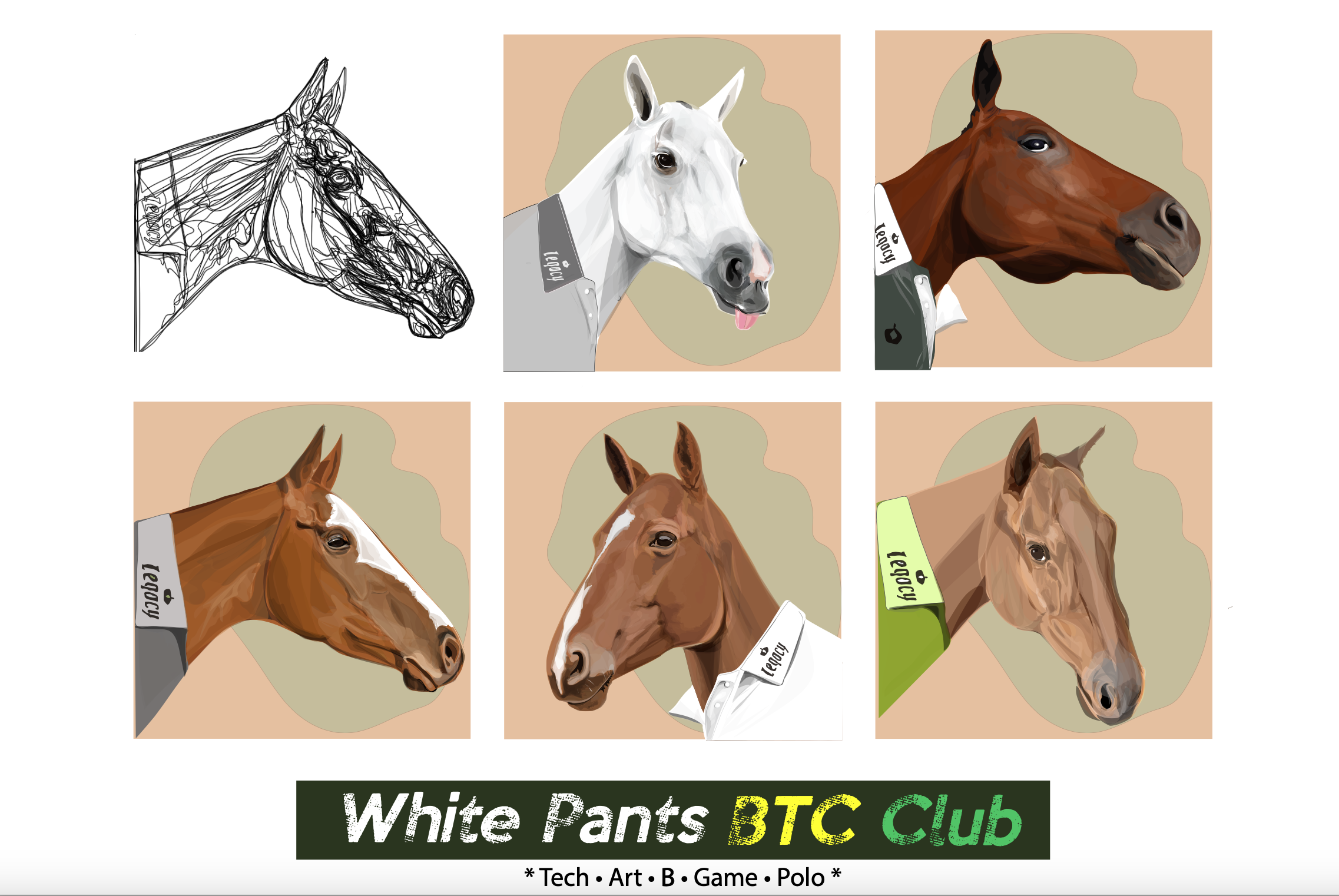 We are now working on White Pants BTC Club, a new collection that explores the expressive side of polo and pays tribute to the most important characters in the sport, the polo ponies. The project includes portraits of legendary horses from US Open fields and Argentina’s polo history, combining deep historical reference with digital precision. It will debut in Rome and includes selected Bitcoin Ordinals that unlock exclusive elements inside SNB Polo Pro.